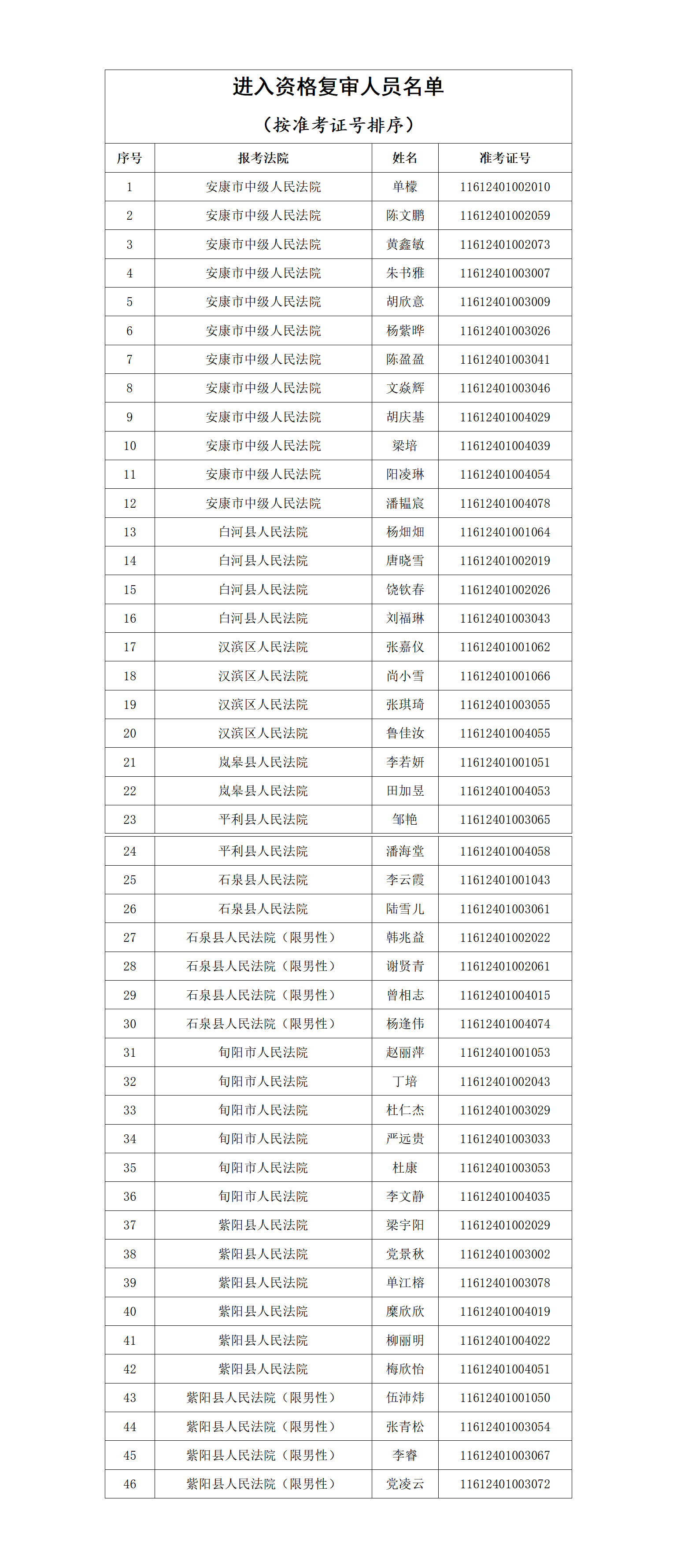 資格復審工作結(jié)束3日內(nèi),進入面試人員名單在安康市中級人民法院及陜西秦潤人力資源集團有限公司官網(wǎng)和微信公眾號上進行公布。